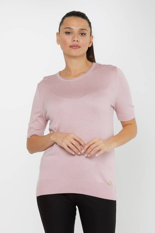 Triko Kazak Kısa Kollu Logolu Gül Kurusu - 16271 | KAZEE (4'lü Set L-XL-2XL-3XL)