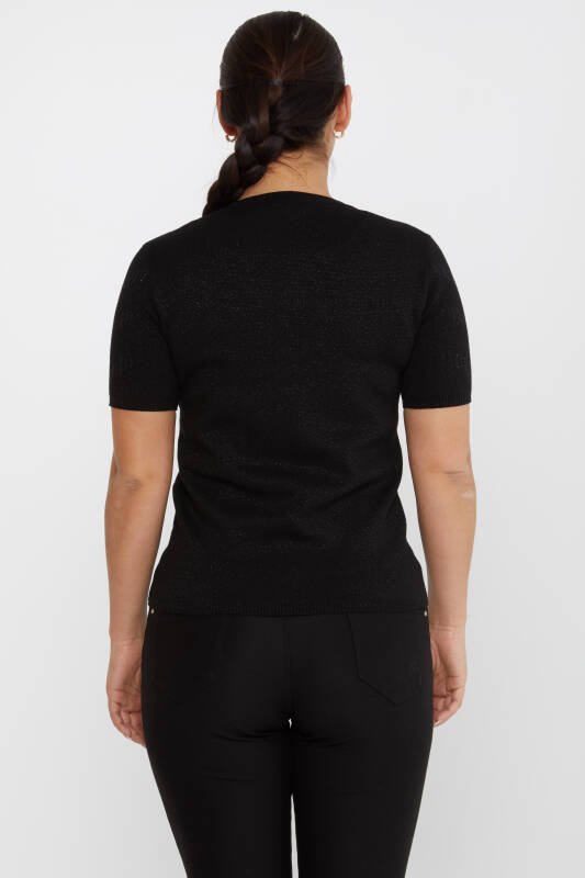 Triko Kazak Kısa Kollu Sim Detaylı Siyah - 31608 | KAZEE (3'lü Set M-L-XL)