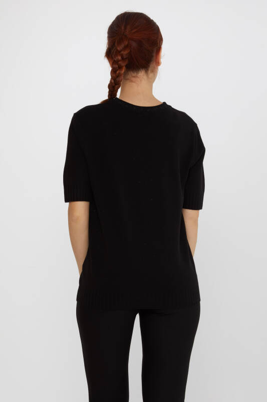 Triko Kazak Kısa Kollu Sim Detaylı Siyah - 31611 | KAZEE (3'lü Set S-M-L)