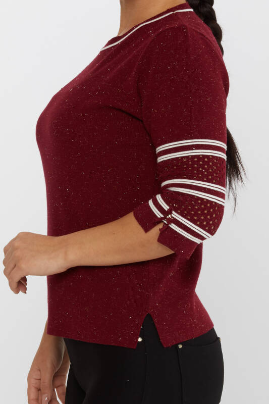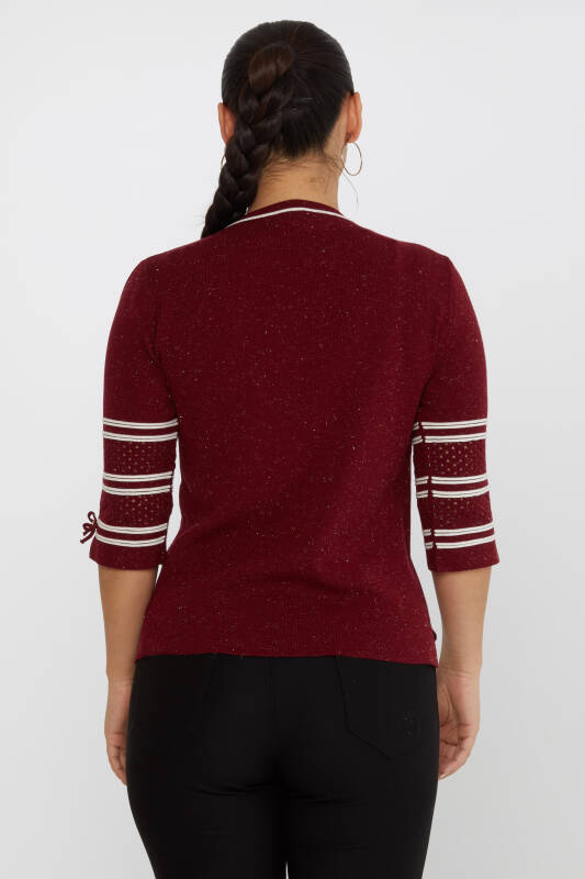 Triko Kazak Kol Detaylı Simli Bordo - 31316 | KAZEE (3'lü Set M-L-XL)