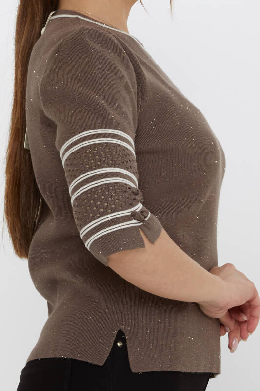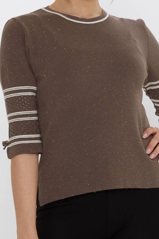 سترة محبوكة بأكمام مفصلة من المنك الداكن اللامع - 31316 | كازي (مجموعة من 3 مقاسات M-L-XL)
