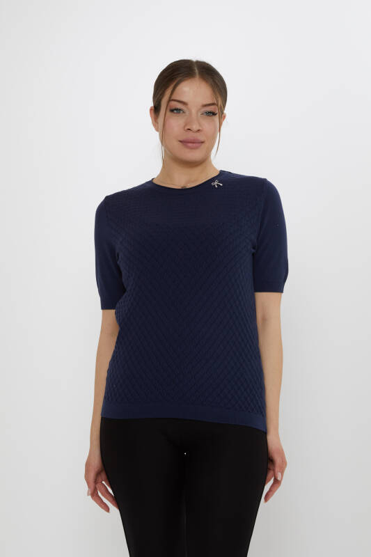Triko Kazak Kurdele Broşlu Kısa Kollu Lacivert - 31815 | KAZEE (3'lü Set L-XL-2XL)
