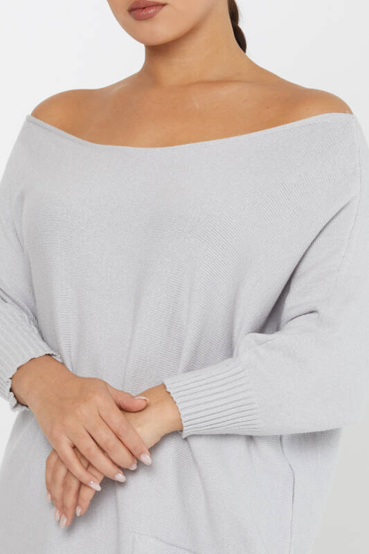 Triko Kazak Omuz Dekolteli Cepli Açık Gri - 30237 | KAZEE (3'lü Set M-L-XL)