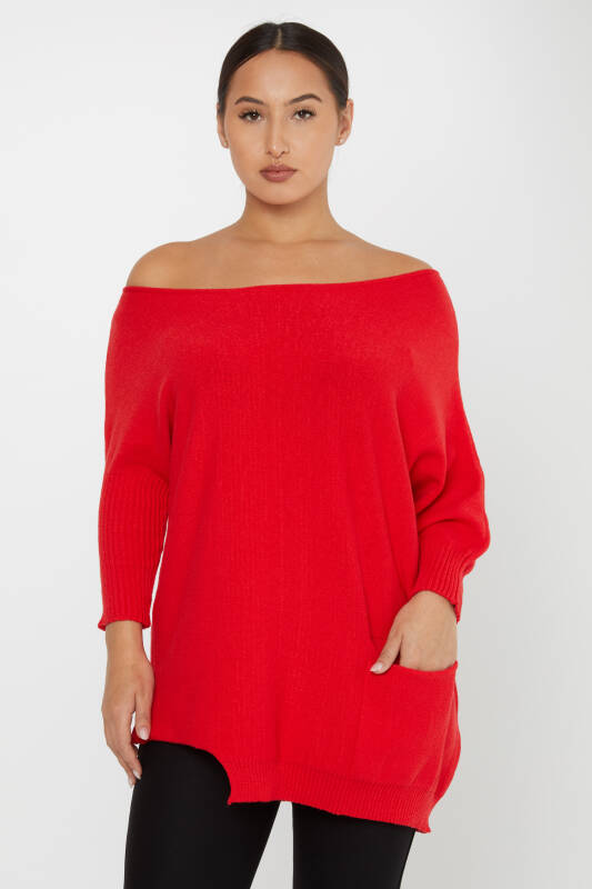 سترة تريكو مكشوفة الكتفين باللون الأحمر مع جيوب - 30237 | كازي (مجموعة من 3 مقاسات M-L-XL)