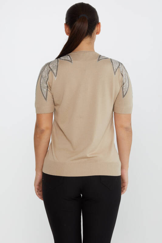 Triko Kazak Omuz Taş İşlemeli Bej - 30792 | KAZEE (4'lü Set M-L-XL-2XL)