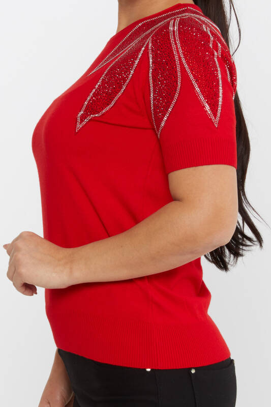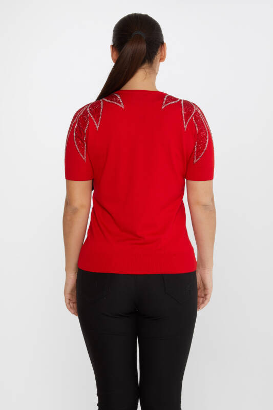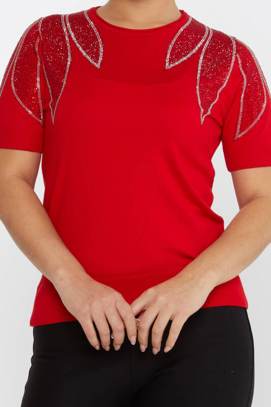 Triko Kazak Omuz Taş İşlemeli Kırmızı - 30792 | KAZEE (4'lü Set M-L-XL-2XL)