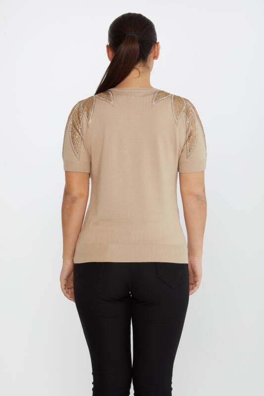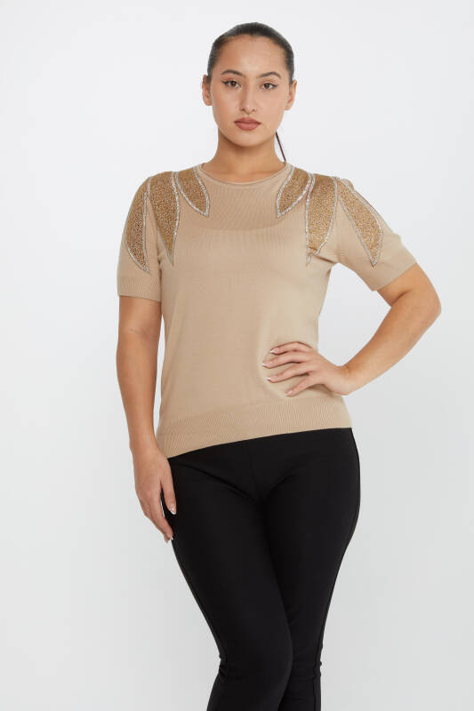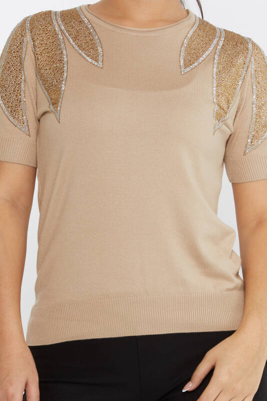 Triko Kazak Omuz Taş İşlemeli Vizon - 30792 | KAZEE (4'lü Set M-L-XL-2XL)