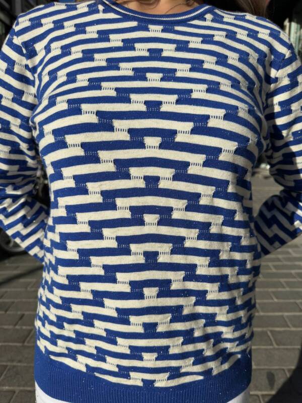 Triko Kazak Renk Geçişli Saks - 32195 | KAZEE (3'lü Set M-L-XL)
