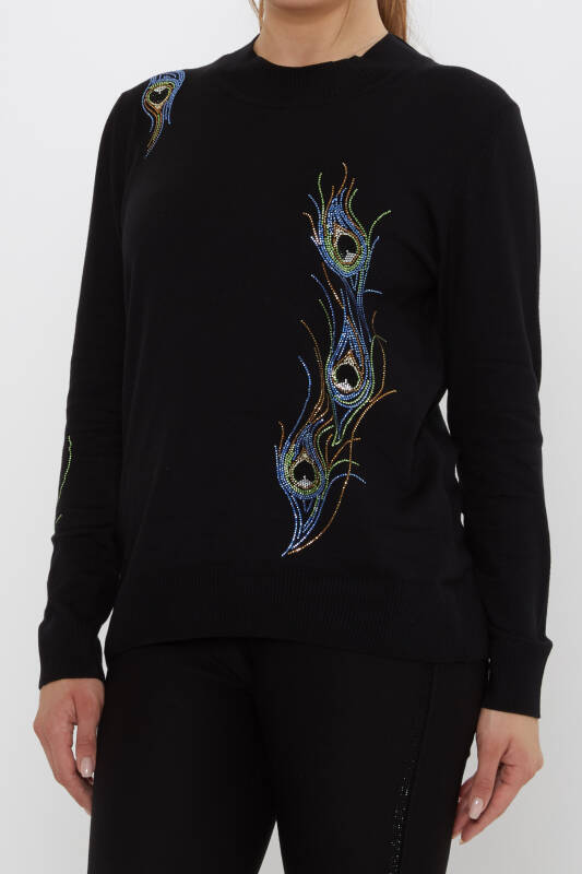 Triko Kazak Renkli Taş İşlemeli Uzun Kollu Siyah - 31775 | KAZEE (3'lü Set L-XL-2XL)