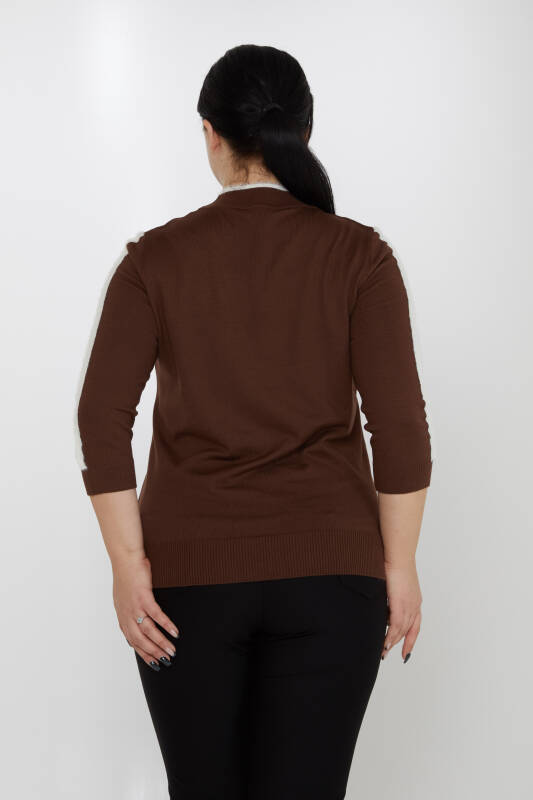 Triko Kazak Şerit Kol Detaylı Kahve - 31196 | KAZEE (3'lü Set M-L-XL)
