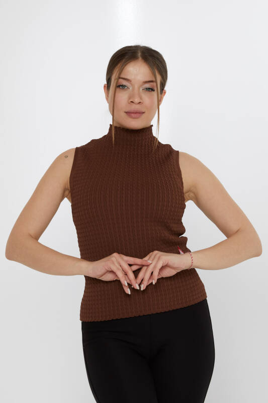Triko Kazak Sıfır Kollu Dik Yaka Kahve - 31658 | KAZEE (3'lü Set S-M-L)
