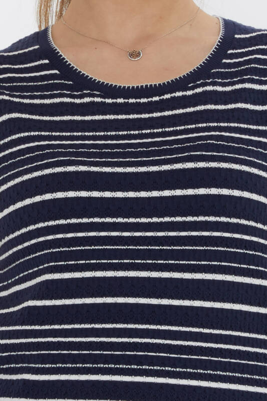 Triko Kazak Sıfır Kollu Çizgi Detaylı Lacivert - 31764 | KAZEE (3'lü Set S-M-L)