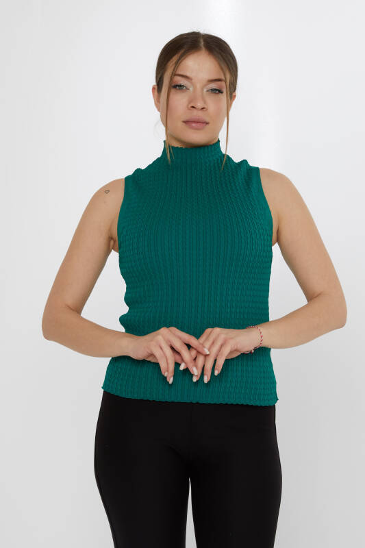 Triko Kazak Sıfır Kollu Dik Yaka Yeşil - 31658 | KAZEE (3'lü Set S-M-L)