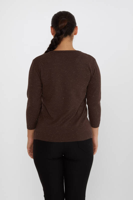 Triko Kazak Sim Detaylı V Yaka Kahve - 31515 | KAZEE (3'lü Set M-L-XL)