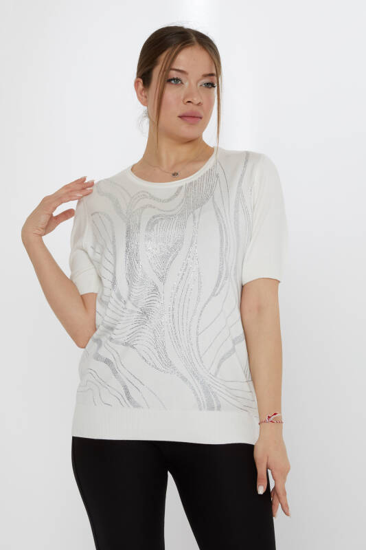 Strickpullover mit Steinstickerei, amerikanisches Modell, Ecru – 30315 | KAZEE (3er-Set L-XL-2XL)