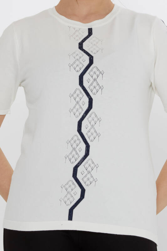 Triko Kazak Taş İşlemeli Ekru - 31758 | KAZEE (3'lü Set M-L-XL)