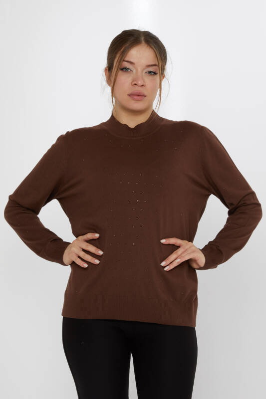سترة محبوكة مطرزة بالأحجار بأكمام طويلة لون القهوة - 31513 | كازي (مجموعة من 3 مقاسات L-XL-2XL)