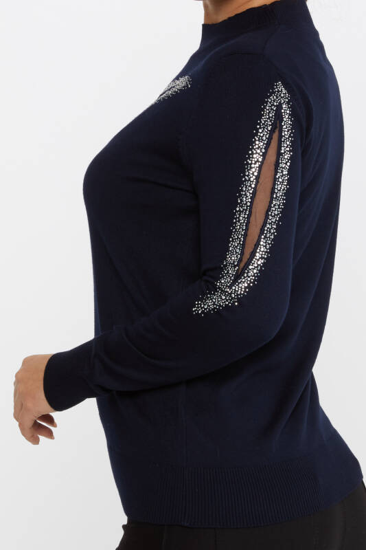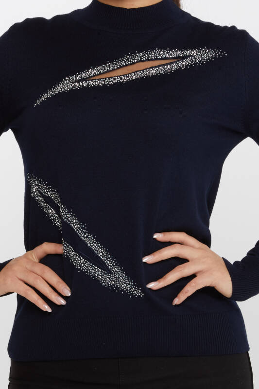 Triko Kazak Taş İşlemeli Lacivert - 30090 | KAZEE (4'lü Set M-L-XL-2XL)