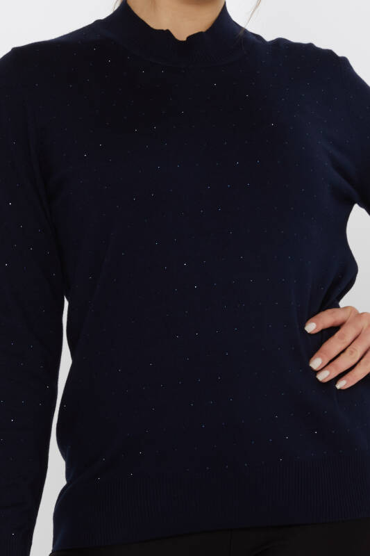 Maglione in maglia Stone ricamato a manica lunga blu navy - 31513 | KAZEE (Set di 3 L-XL-2XL)