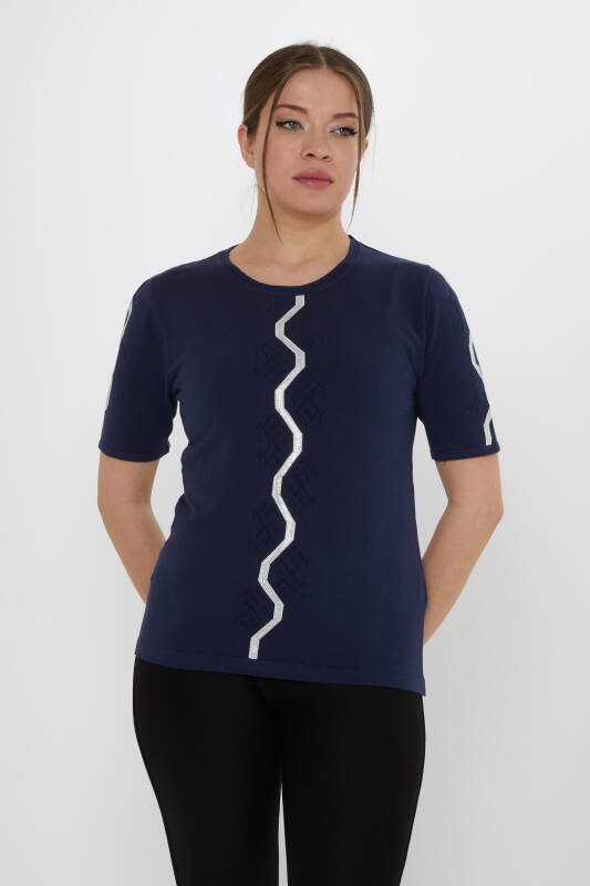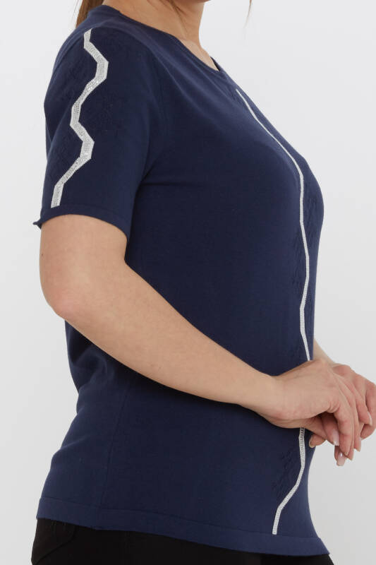 Triko Kazak Taş İşlemeli Lacivert - 31758 | KAZEE (3'lü Set M-L-XL)