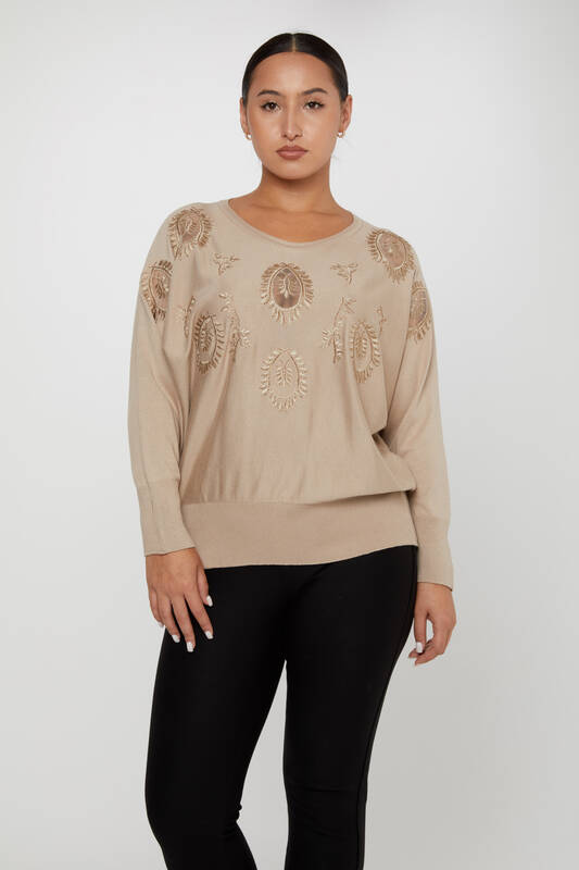 ژاکت بافتنی تول آستین بلند بژ - 30902 | KAZEE (مجموعه 4 عددی L-XL-2XL-3XL)