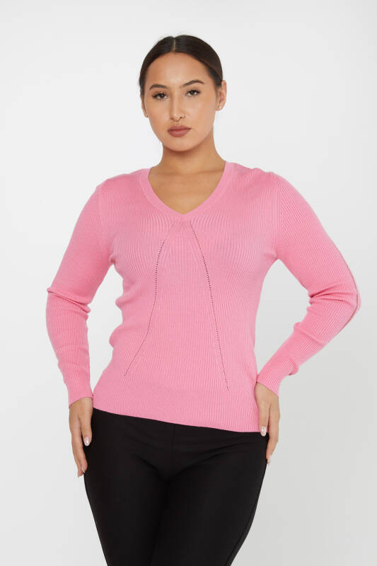Triko Kazak Uzun Kollu V Yaka Pembe - 16240 | KAZEE (3'lü Set S-M-L)