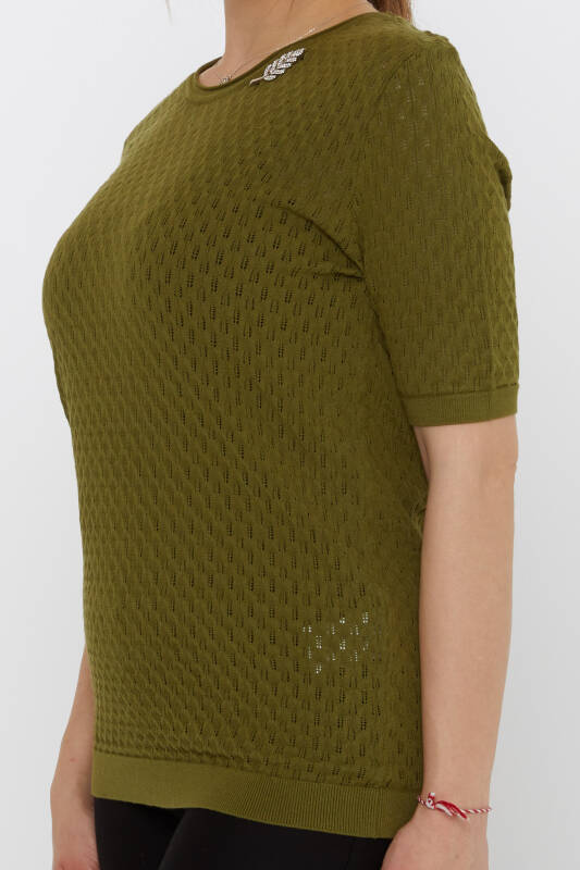 Triko Kazak Yaprak Broşlu Kısa Kollu Koyu Yeşil - 31811 | KAZEE (3'lü Set M-L-XL)