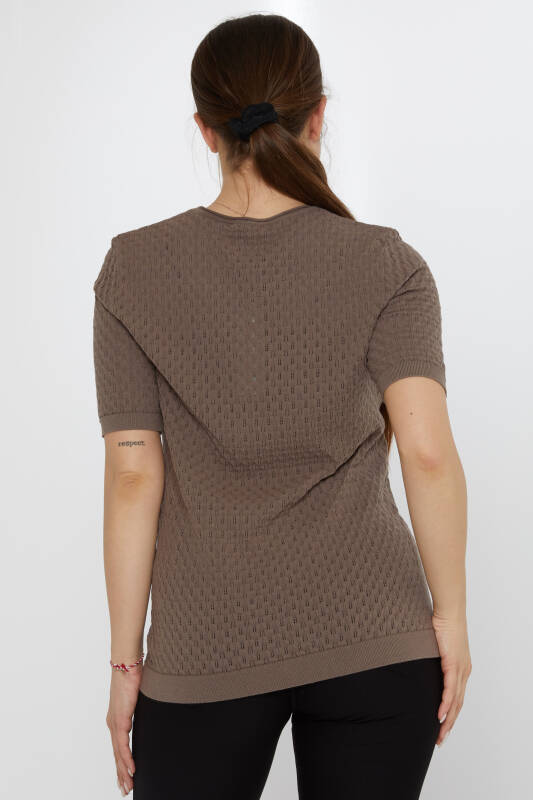 Strickpullover mit Blattbrosche, Kurzarm, Nerz - 31811 | KAZEE (3er-Set M-L-XL)