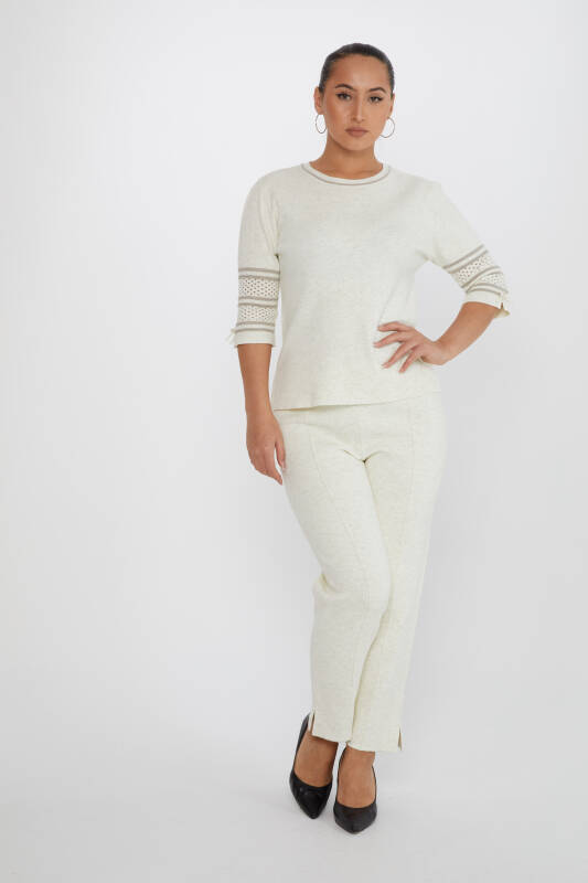 Triko Pantolon Beli Lastikli Sim Detaylı Ekru - 31527 | KAZEE (3'lü Set M-L-XL)