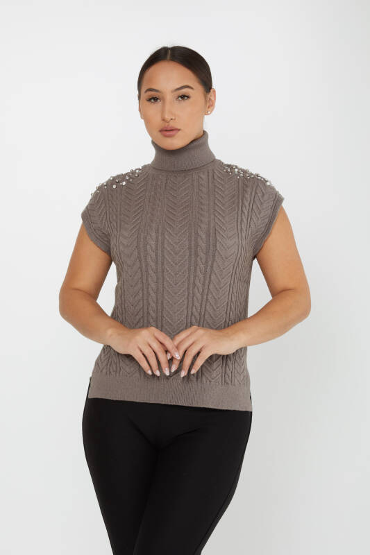 Triko Süveter Kol Taş Detaylı Vizon - 30242 | KAZEE (3'lü Set S-M-L)