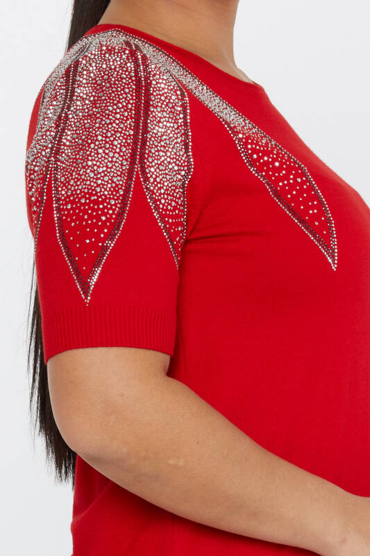 Трикотаж Свитер Американская модель с каменной вышивкой Красный - 31238 | КАЗИ (набор из 3 шт. S-M-L)