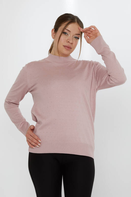 Трикотажный свитер с вышивкой камнями, длинный рукав, пудровый - 31513 | KAZEE (Набор из 3 шт. L-XL-2XL)