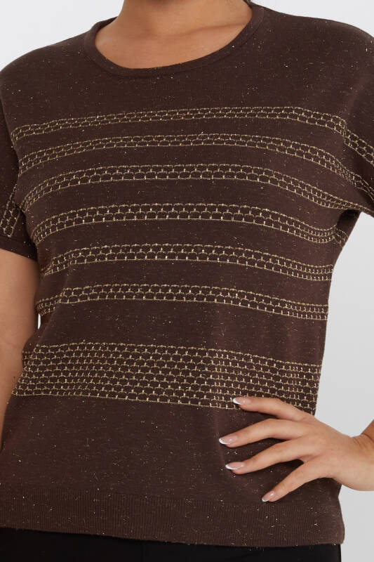 Трикотаж Свитер с короткими рукавами и блестками, коричневый - 31652 | КАЗИ (набор из 3 шт. M-L-XL)
