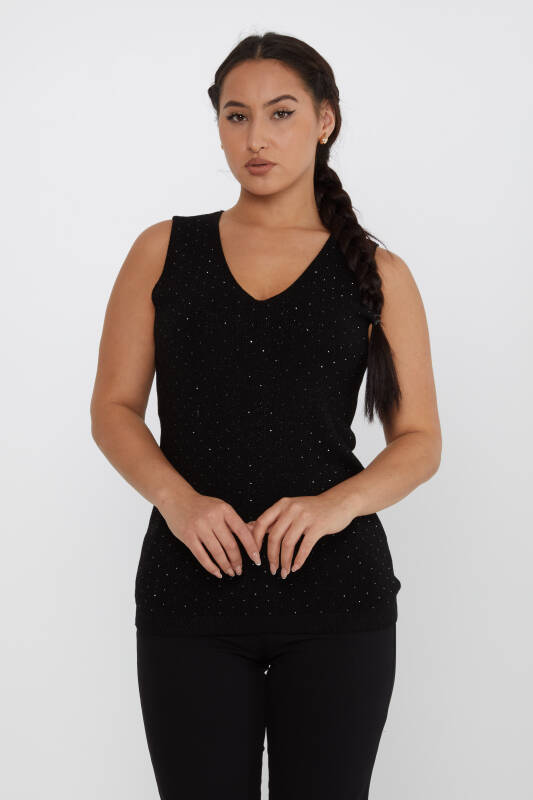 Трикотаж Свитер с нулевым рукавом и каменной вышивкой, черный - 30719 | КАЗИ (набор из 4 шт. S-M-L-XL)