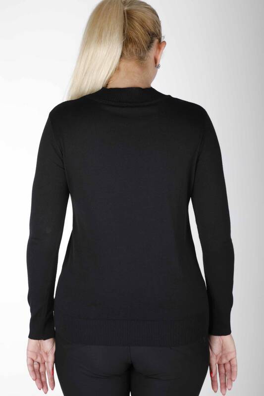 Трикотаж Свитер с узором и вышивкой камнями, черный - 30636 | КАЗИ (набор из 4 шт. M-L-XL-2XL)