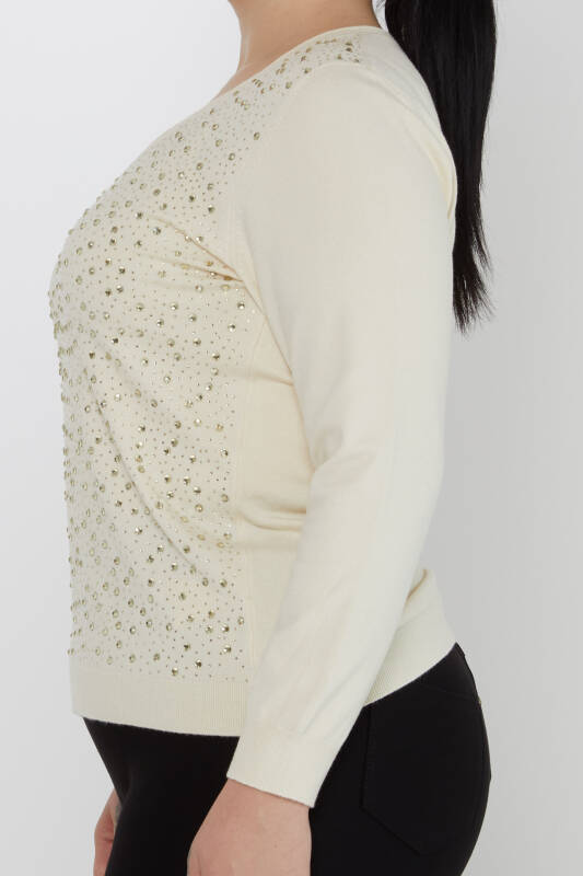 Трикотажный свитер с вышитыми кристаллами и длинными рукавами цвета экрю - 31213 | KAZEE (Набор из 3 шт. M-L-XL)
