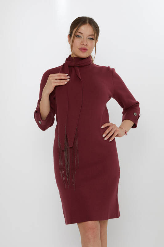 Вязаное платье с шарфом и рукавами на пуговицах, бордово-красное - 30968 | KAZEE (Набор из 3 шт. S-M-L)