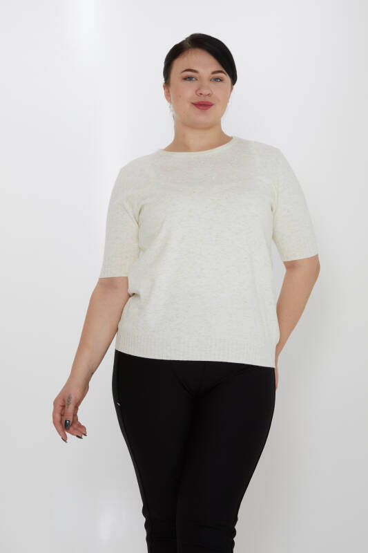 Трикотажный свитер с блестками, короткий рукав, цвет экрю - 31714 | KAZEE (Набор из 3 XL-2XL-3XL)