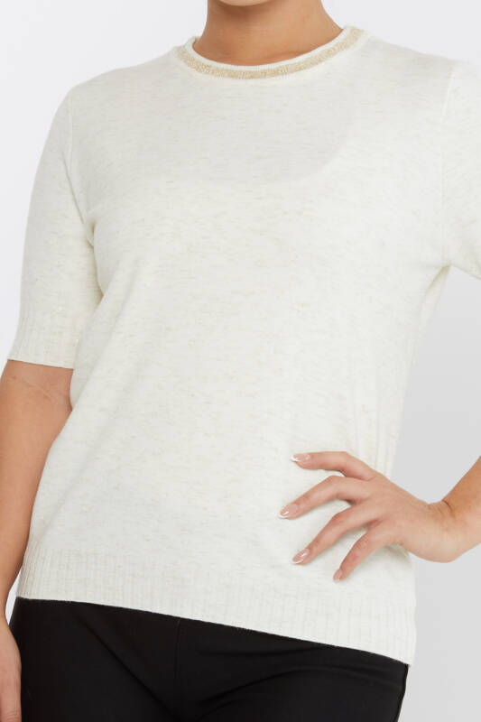 Трикотажный свитер с коротким рукавом, блестящая отделка, цвет экрю - 31611 | KAZEE (Набор из 3 шт. S-M-L)