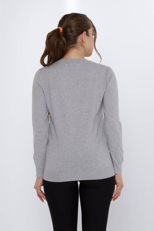 Трикотажный свитер с вышитыми розами, серый цвет с вышитыми камнями - 31377 | KAZEE (Набор из 3 шт. L-XL-2XL)