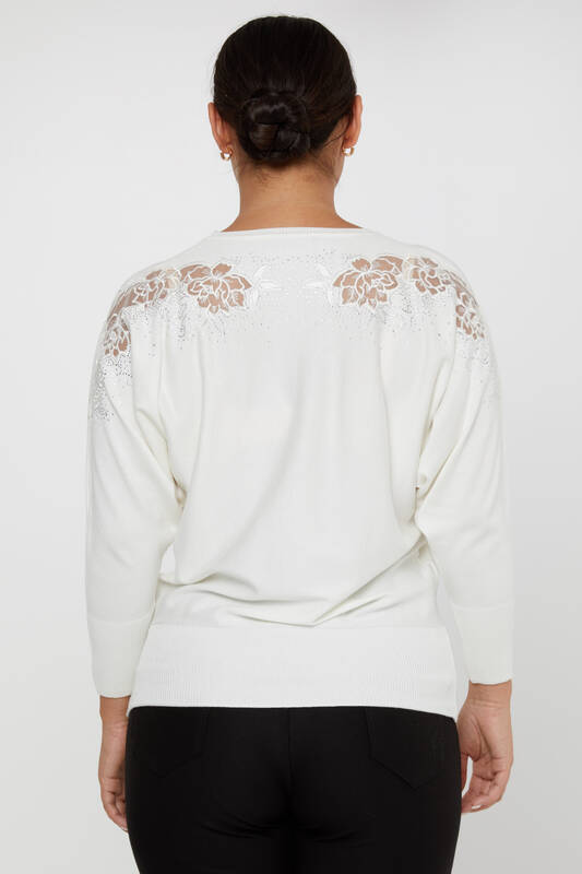 Трикотажный свитер с вышитым круглым вырезом цвета экрю - 30925 | KAZEE (Набор из 4 шт. M-L-XL-2XL)
