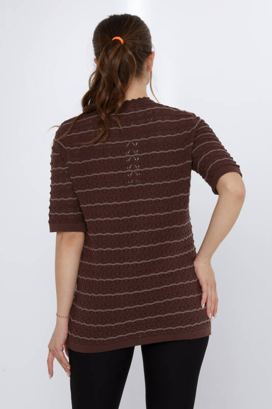 Трикотажный свитер в полоску с ажурным узором, коричнево-норковый - 31778 | KAZEE (Набор из 3 шт. M-L-XL)
