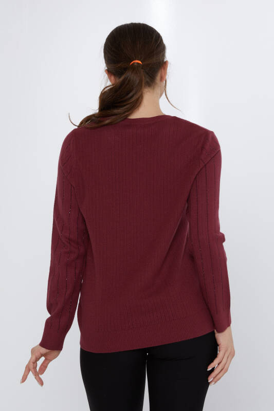 Трикотажный свитер в полоску с вышивкой камнями, длинный рукав, бордово-красный - 31110 | KAZEE (Набор из 3 шт. M-L-XL)
