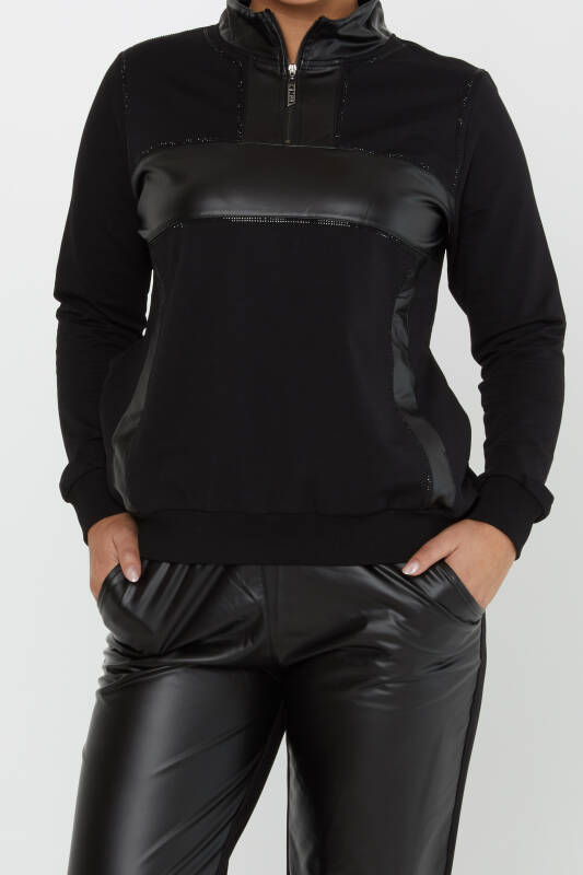 Set di tute in pelle con colletto dettagliato con cerniera nero - 17334 | KAZEE (Set da 4 42-44-46-48)