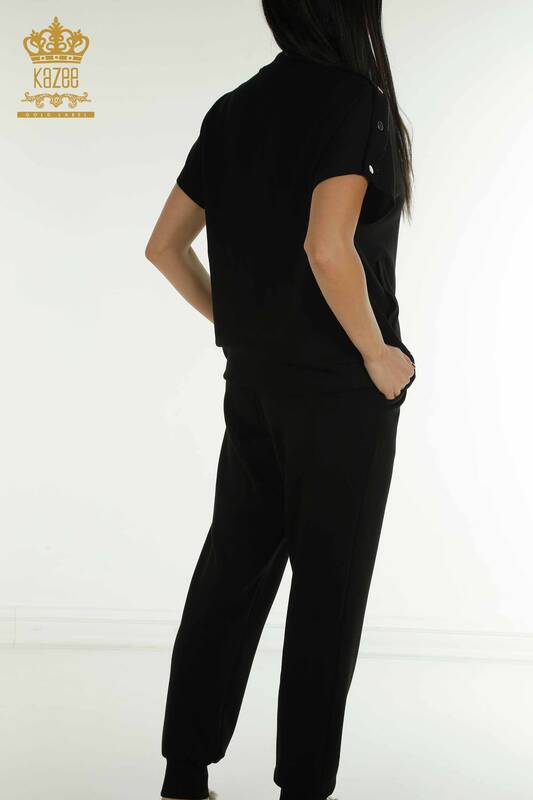 Vendita all'ingrosso Set di tute da donna manica corta pietra ricamata con cerniera nera - 17680 | KAZEE