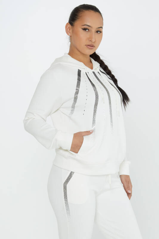 Completo tuta con ricamo pietre con cappuccio Ecru - 17597 | KAZEE (Set da 4 M-L-XL-2XL)
