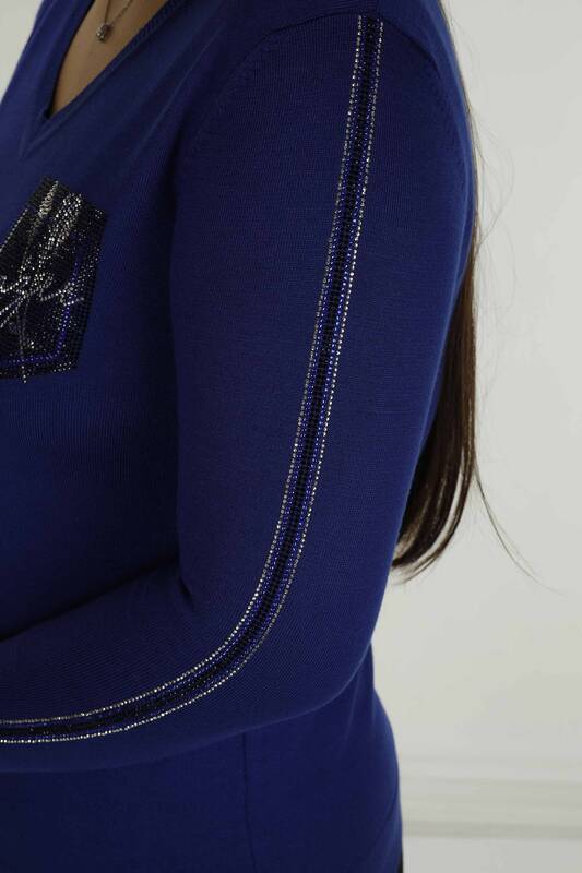 Langarm-Strickwaren-Saks mit V-Ausschnitt und Steindetail - 30751 | KAZEE