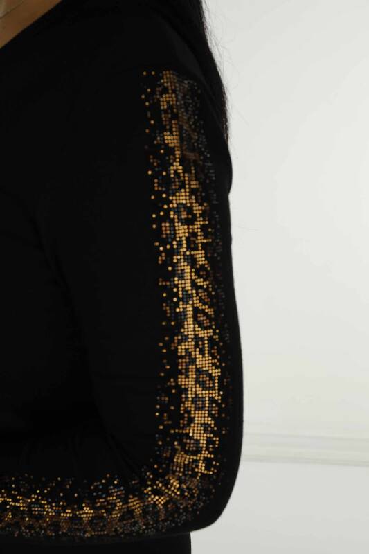 V Yaka Uzun Kol Taşlı Triko Siyah- 30573 | KAZEE