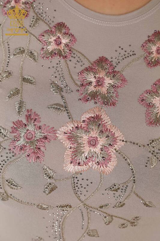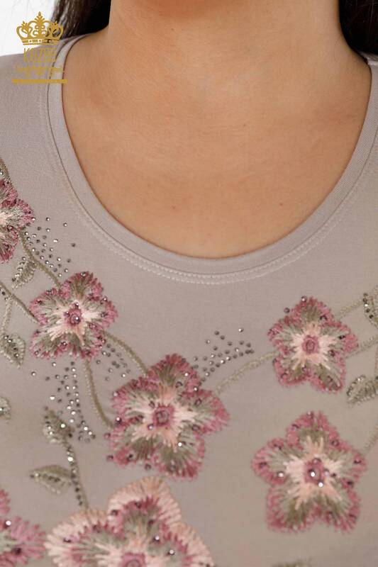 All'ingrosso Camicetta da donna Girocollo Ricamo pietra a motivi floreali - 79017 | KAZEE