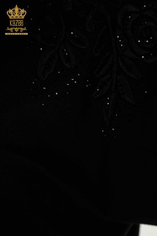 Camicetta da donna all'ingrosso motivo floreale pietra ricamata nera - 79097 | KAZEE